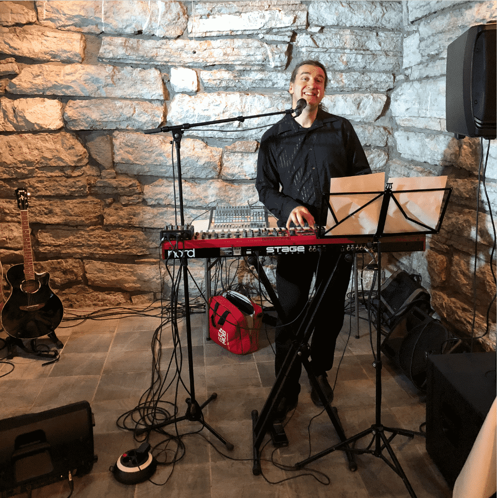 We perform in company events, weddings and anniversaries. We perform piano and song music in both the wedding, reception and table during dinner, if desired. Not least, we perform dance music for the party !!