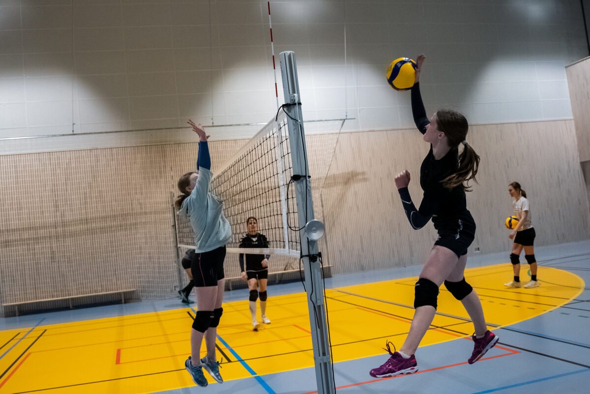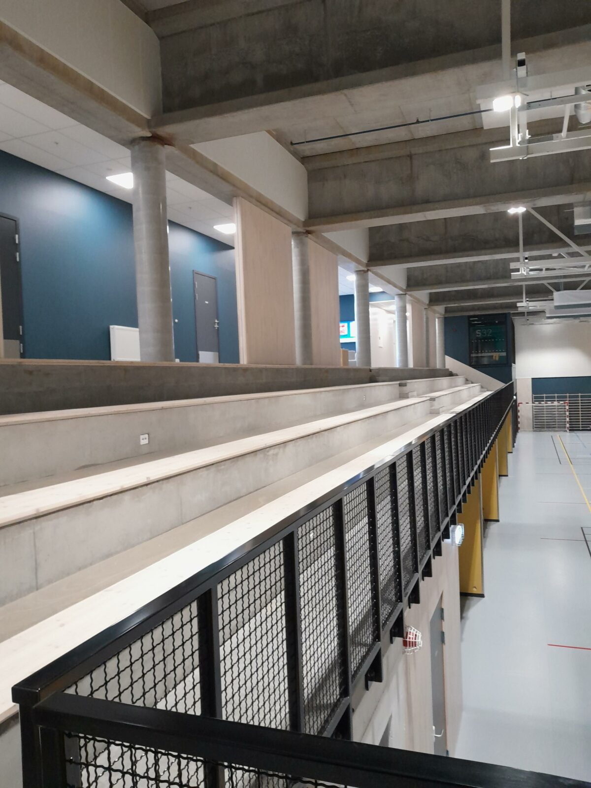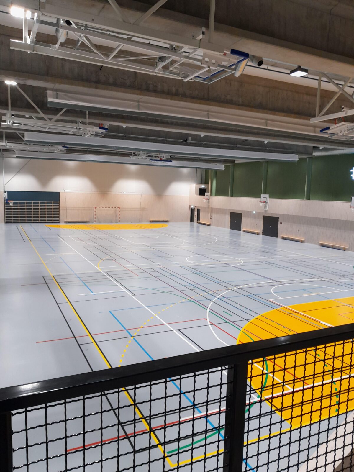 I flerbrukshallen finnes det tre skillevegger, slik at man kan dele hallen i 4 baner.