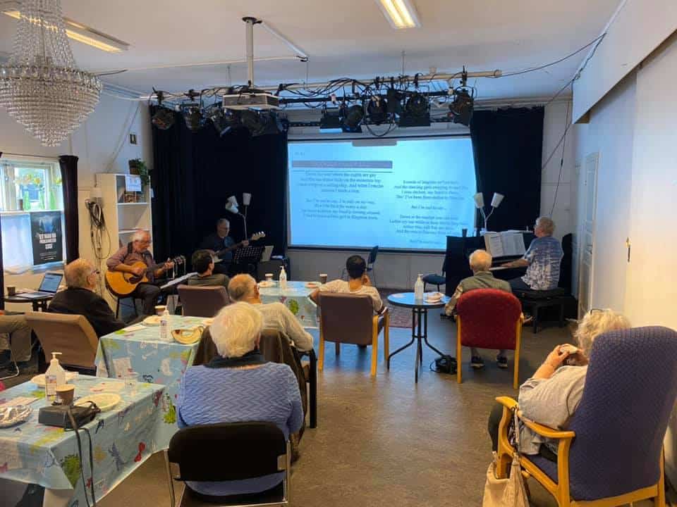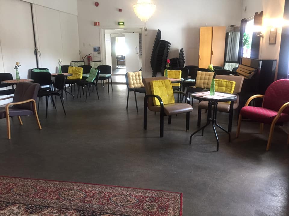 Her kan det holdes konserter og fremføringer. Ypperlig når det gjelder å holde avstand og oppholde god smittevern. Det er flere sittegrupper og vi kan eventuelt få på plass flere stoler om det er nødvendig.