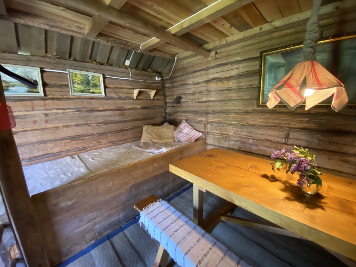 Her tilbys utleie kun i sommerhalvåret (1. mai – 1. oktober) med kapasitet for inntil fire voksne eller to voksne og inntil fire barn. To stråleovner for oppvarming som henger på veggen. Det er et stort rom med åpen sovehems med stige opp. Nede er det laget sengebenker i de gamle kornbingene ellers innredet med langbord og benker. Vann hentes rett utenfor på tunet. Stabburet er utstyrt med puter/dyner og vaskevannsfat. Kjøkken har hybelkomfyr med to kokeplater, vannkoker, kjøleskap og ellers det man trenger for matlaging. Kok opp vann og ta oppvasken i balje. Enkelt utekjøkken rett utenfor døra.